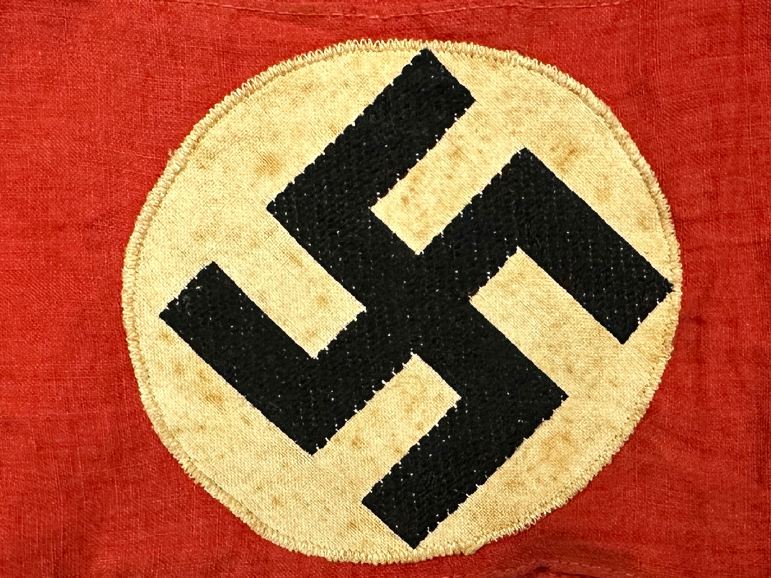 The NSDAP armband was adopted in the early years of the party, around 1920, during its formative phase in Munich. It served as an easily identifiable symbol of allegiance and a visual representation of the party's ideology. The design combined traditional German color symbolism (red, white, and black) with a twisted swastika, an ancient symbol that the Nazis appropriated to represent the supposed purity and destiny of the "Aryan race."