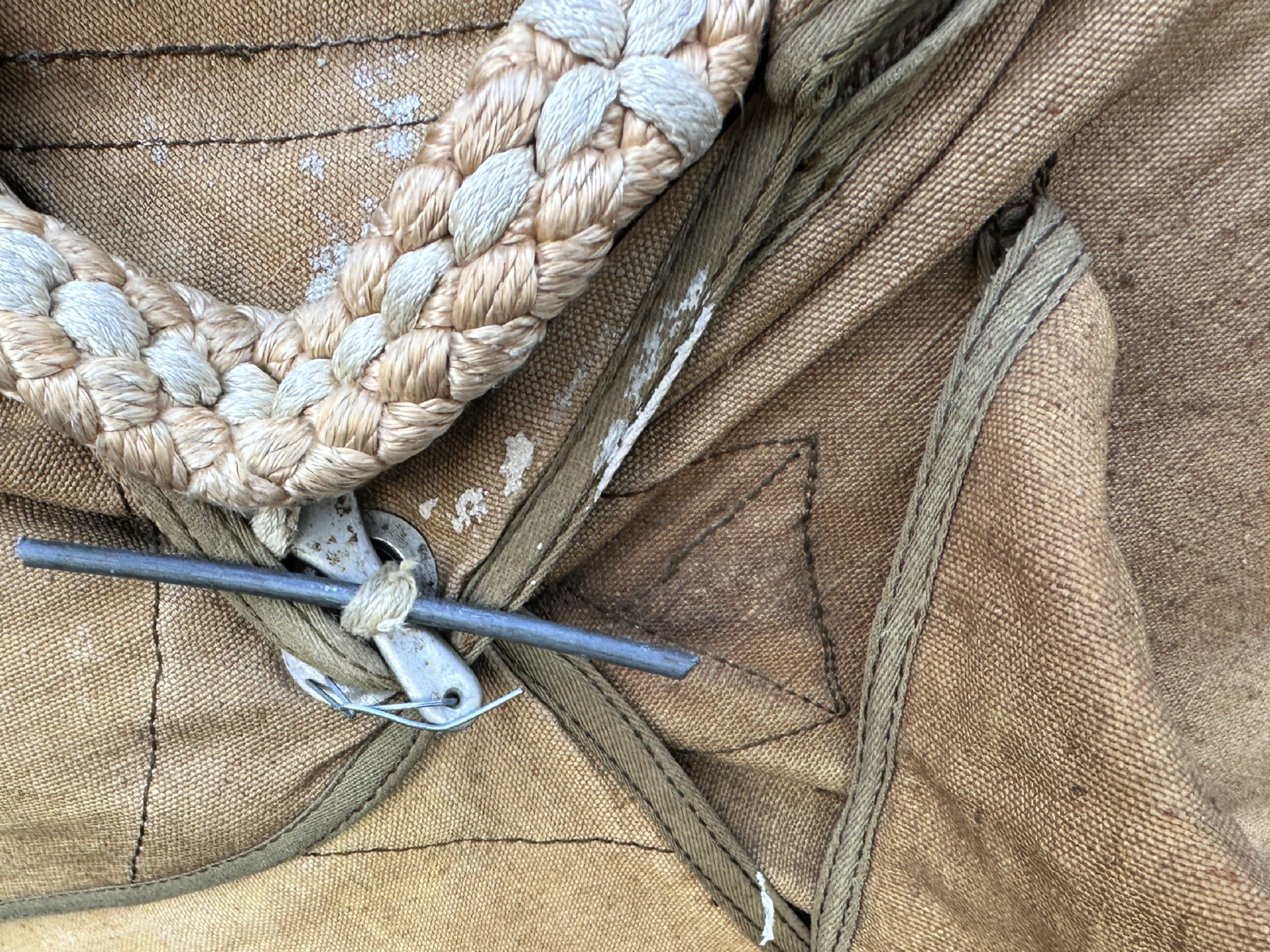 A WW2 German Fallschirmjäger Parachute Complete Set stands as an extraordinary and exceptional original equipment set that German paratroopers from the Luftwaffe received. The complete set consists of the main parachute canopy together with the full web harness and essential metal fittings and buckles which meet wartime production specifications. The parachute canopy features durable silk or rayon fabric which was standard for German airborne equipment during that time period. The original field-gray or off-white coloration of the parachute remains intact with suspension lines that connect properly to the harness assembly. The aging process has resulted in noticeable fading and minor fraying and storage stains which prove the item's genuine age. The Fallschirmjäger harness maintains its operational state while featuring complete functionality through its high-quality heavy-duty webbing system which includes all adjustment straps and snap hooks and quick-release mechanisms. The webbing demonstrates typical signs of wartime use through contact point wear yet it maintains its structural integrity. The metal components of the parachute show Luftwaffe acceptance stamps and aging patterns that match authentic wartime equipment. The German parachute system used a seat-mounted packing system which combined the canopy with the harness in a single container instead of separate backpacks. The design enabled quick canopy deployment after aircraft exit because German airborne troops jumped from low altitudes. The collector market lacks complete and original Fallschirmjäger parachute sets because most units were destroyed in combat or post-war repurposed. Advanced militaria collectors together with museums actively seek out surviving Fallschirmjäger parachute sets that maintain their complete harness and canopy. This exceptional set provides direct access to the courageous airborne soldiers of the Third Reich while functioning as a significant historical artifact from German airborne forces during World War Two.