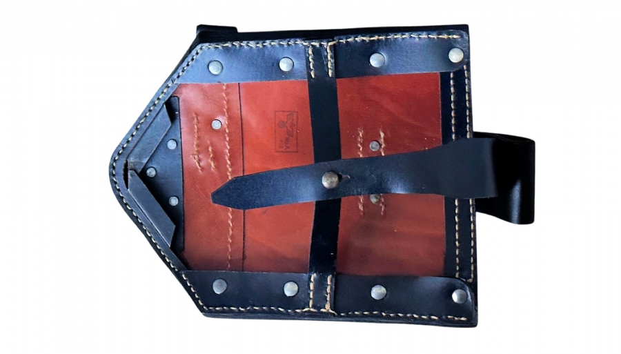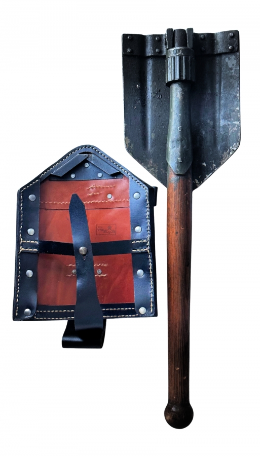 These shovels were often carried in a special carrying pouch or cover made of canvas or leather. The cover was designed to protect the blade and keep it securely fastened to the soldier's equipment when not in use.